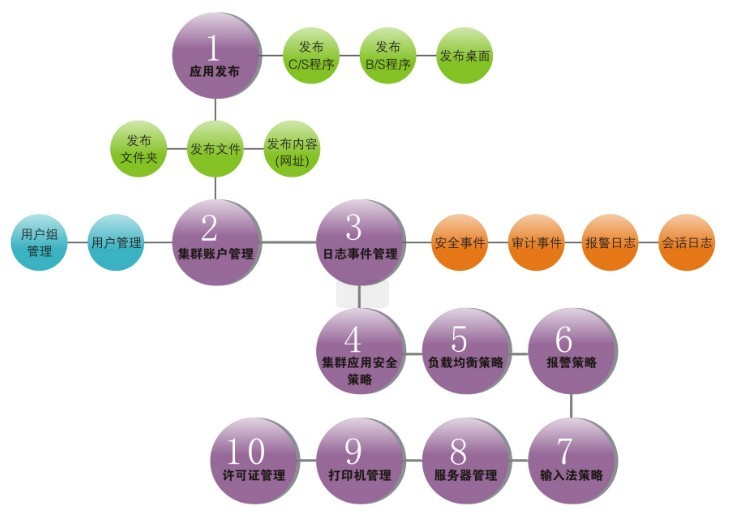 可對C/S 、B/S 等應用程序,“ 桌面”、“ 內容” 進行集中發布與管理。 |