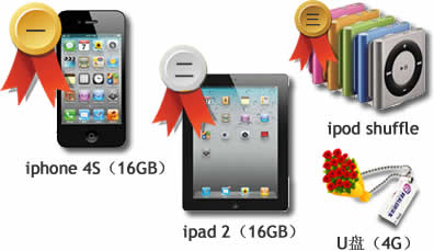獎品:iphone 4S(16GB)+ 獲獎證書 + 瑞友公司榮譽顧問